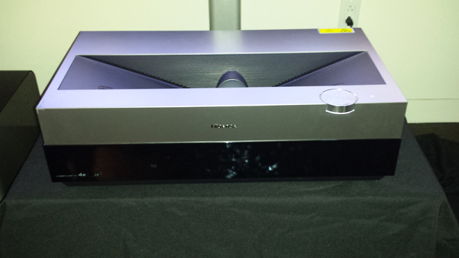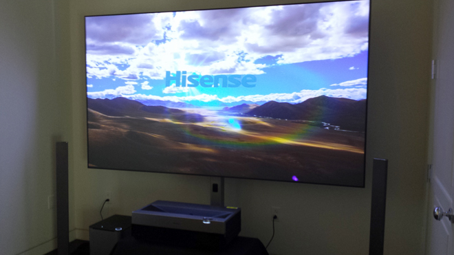 For demo purposes, Hisense had the 100-inch 4K Laser TV set up in its own room where the display took up most of the back wall. With the projector about 13-inches from the screen, the TV played back various clips of hillsides, flowers, and busy cities. While a lot of this material looked fantastic on the massive screen, a few of the clips did exhibit some notable artifacts, including aliasing. Thankfully, these quirks seemed to be inherent to the source and not the projector itself. Again, it should be noted that the material was not presented in HDR and though the window was covered to some extent, there was still a fair amount of ambient light in the room, making it hard to fully judge the picture quality.