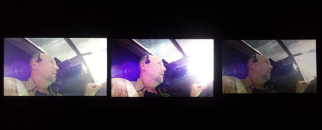 To further exemplify the benefits of Dolby Vision, the VIZIO representative also paused the picture during a sequence from 'The Lego Movie' to show off a close-up of a headlight. On the Samsung and Pioneer TVs, all detail was lost in the light, but on the VIZIO, the brightness from the light popped from the screen while still retaining more levels of detail. Of course, the LCD VIZIO was still subject to off-angle picture quality degradation, but from a reasonable viewing position the Dolby Vision process really blew away the competition. While I've included pictures from the presentation to give you an idea of the differences between the three sets (Samsung left, VIZIO center, Pioneer right), please note that my smartphone camera is not a particularly good way to capture such a comparison, and the VIZIO did not look blown out in person like it does in the pictures above and below.
