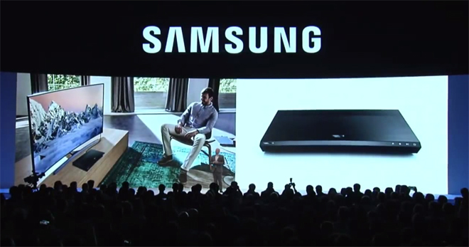 The Samsung UBD-K8500 features a sleek, curved design to complement the company's curved-screen TVs. The device will support playback of Ultra HD Blu-ray discs at a resolution of 3840x2160 along with support for expanded color gamuts, high dynamic range, high frame rate content, Samsung's smart hub, multi-room link, and object-based audio tech like Dolby Atmos and DTS:X. In addition, future Samsung Ultra HD Blu-ray player models will also include support for the format's "Digital Bridge" feature, allowing customers to side-load content off of their discs and onto other devices.